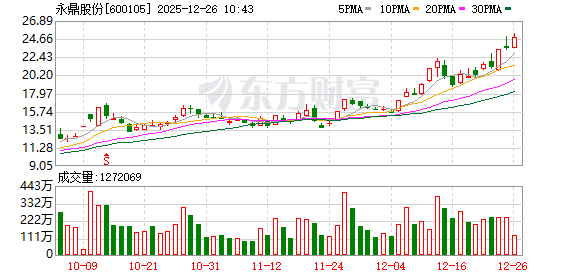永鼎股份股价再创历史新高,该股近期呈不断突破新高之势,近一个月累计有11个交易日股价刷新历史纪录。截至09:52,该股目前上涨7.39%,股价报25.27元,成交8409.57万股,成交金额20.60亿元,换手率5.75%,该股最新A股总市值达369.45亿元,该股A股流通市值369.45亿元。