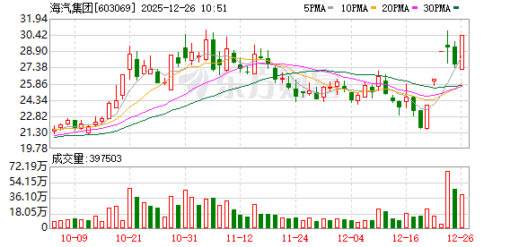 海汽集团再度涨停,6个交易日内录得4个涨停,累计涨幅为40.06%,累计换手率为60.50%。截至10:06,该股今日成交量3354.09万股,成交金额9.75亿元,换手率10.61%。最新A股总市值达96.00亿元。